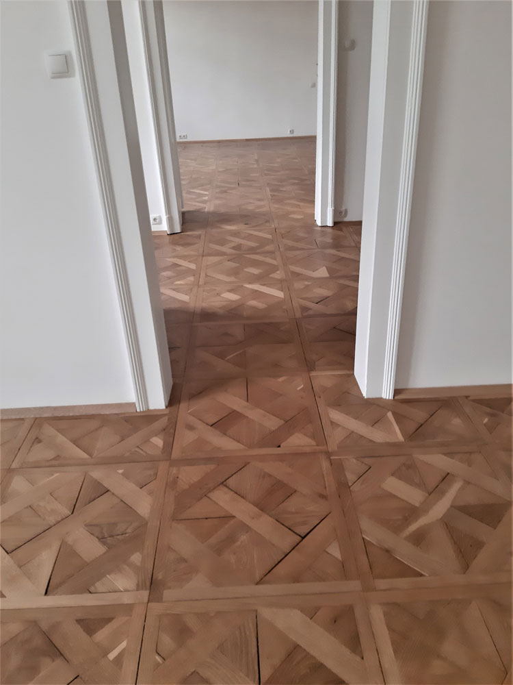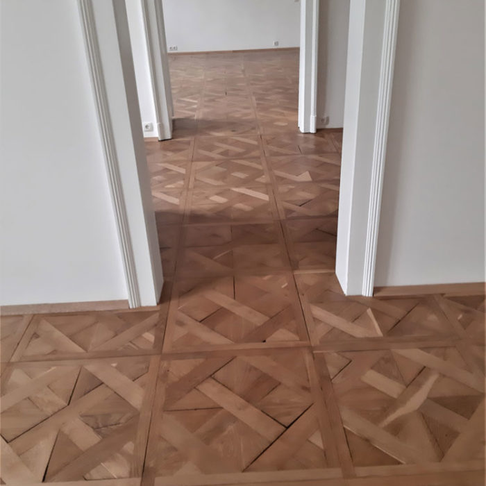 Bei diesem Projekt haben wir eine Komplettsanierung von Parkettböden durchgeführt. Fehlende oder stark beschädigte Bretter wurden von uns fachgerecht ausgetauscht, sodass kein Unterschied zu erkennen ist. Zusätzlich wurde der alte Boden mit umweltfreundlichen Produkten neu veredelt.