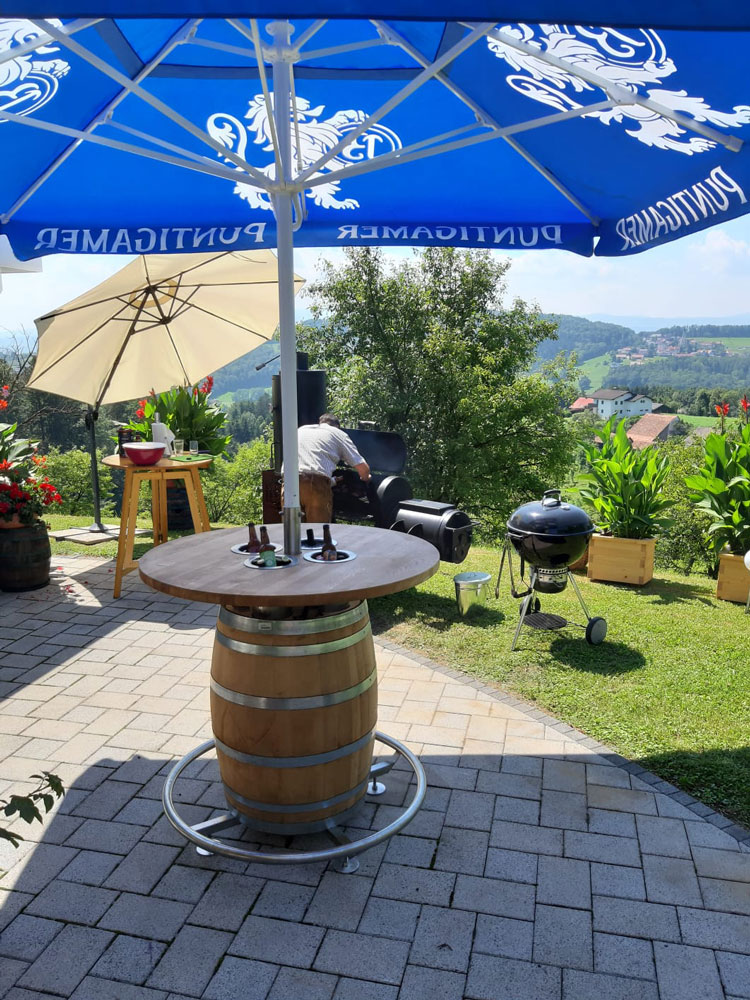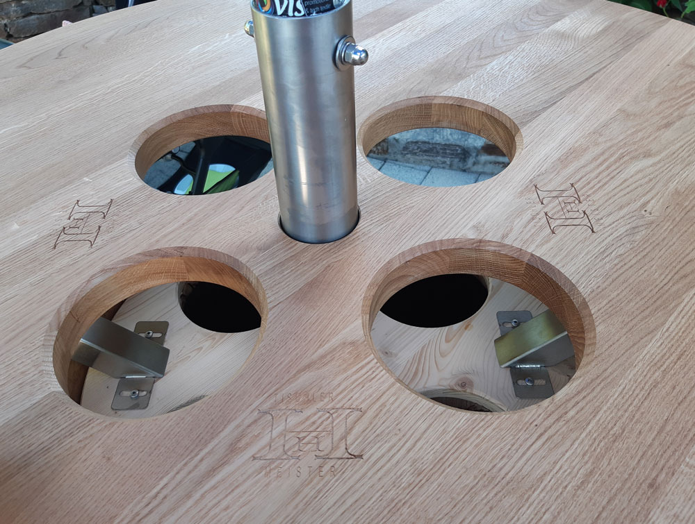 Dieser exklusive Stehtisch mit Schirm und integrierter Getränkekühler ist in jedem Garten oder Terrasse ein besonderer Blickfang. Wir verwenden je nach Wunsch verschiedene Tischplatten wählbar: Holz, Stein oder Kompaktplatten. Zusätzlich ist eine Personalisierung durch Gravur auch möglich.