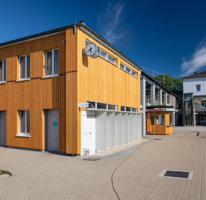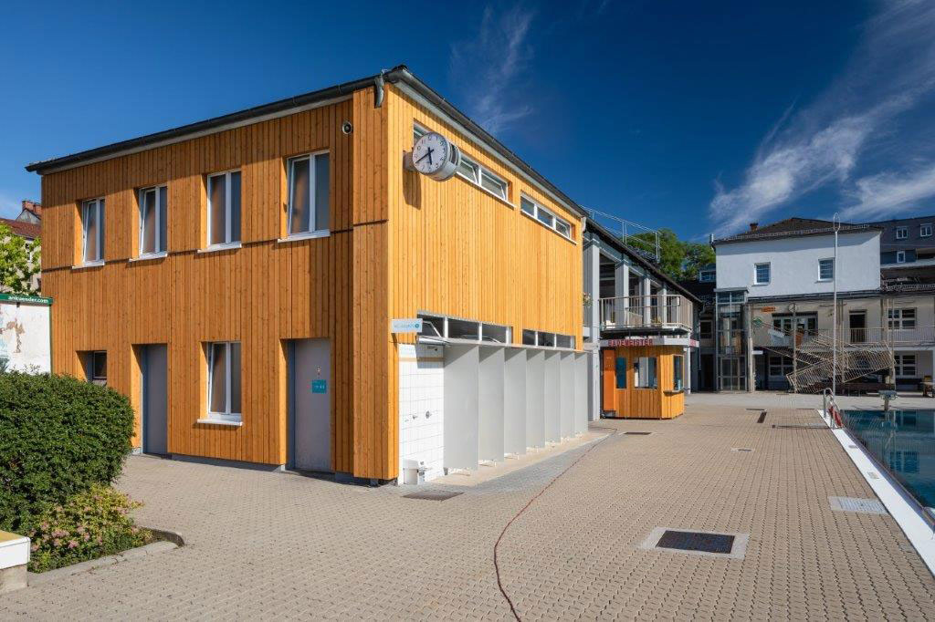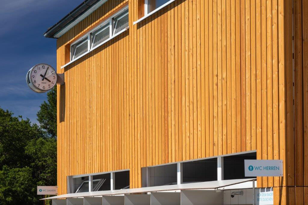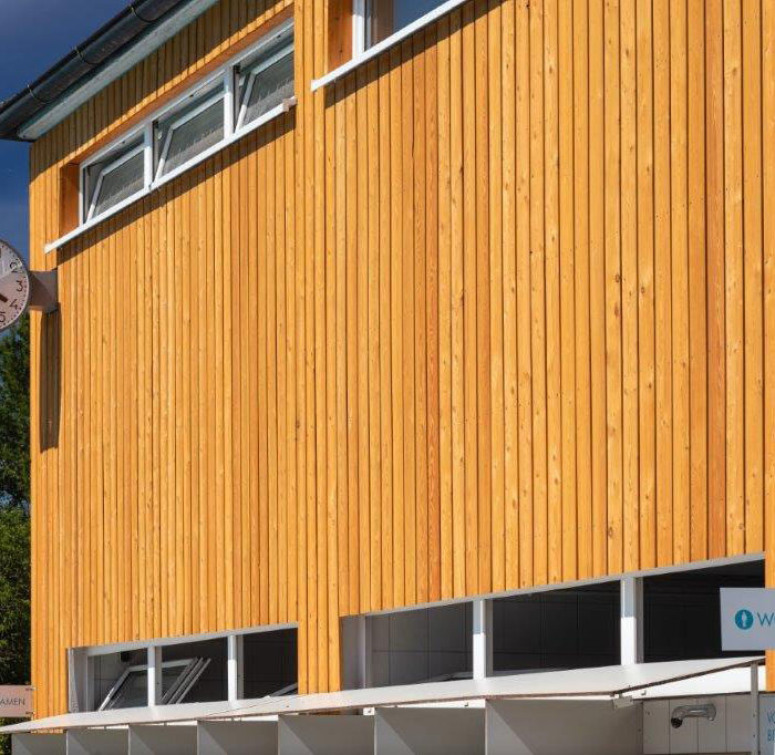 Mit einer Holzverkleidung kann eine Fassade in einem neuen Glanz erscheinen. So haben wir die Fassade eines Freibades in Graz mit einer Holzverkleidung neugestaltet.
